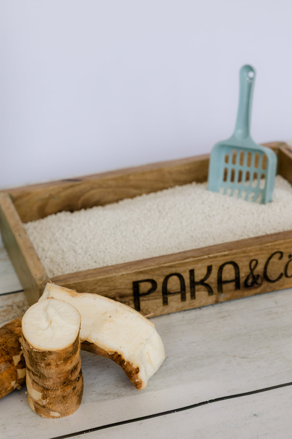 Cassava naturally absorbs liquid fast, forms tight clumps, and helps contain those not-so-cute smells.
